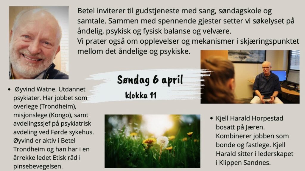 Alle sammen gudstjeneste 12.april kl 11.00. Gledesbud skal opptre.